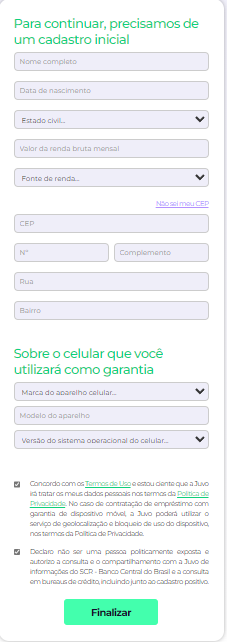 Após preencher todos os requisitos, o usuário será encaminhado para o site oficial da Juvo, que será a plataforma responsável por analisar o seu aparelho celular e a liberação final de seu empréstimo com aparelho em garantia.